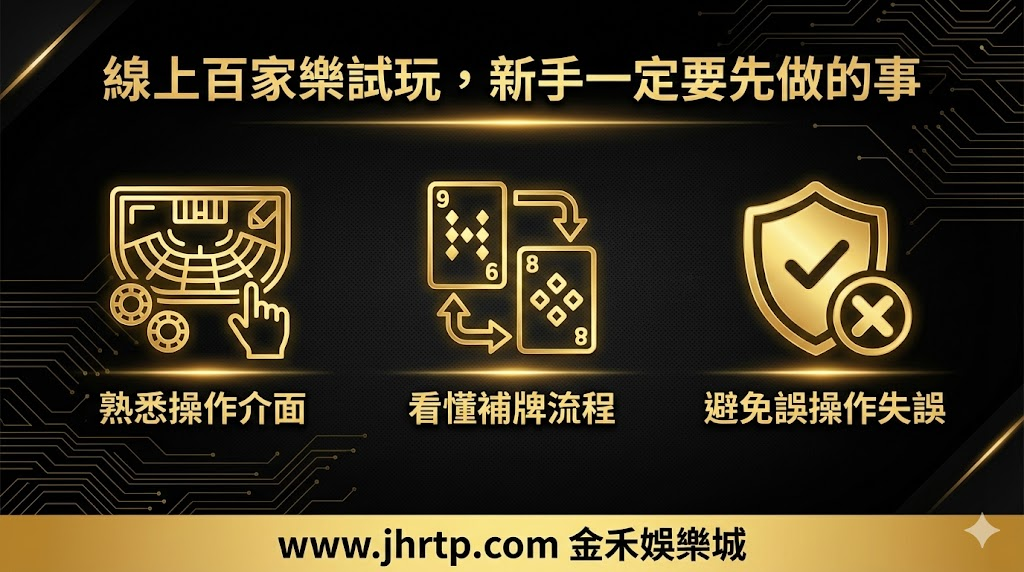 百家樂完整攻略一次看懂!深入解析百家樂玩法規則、補牌邏輯、常見打法與線上百家樂試玩重點,並教你如何挑選像金禾娛樂城這類安全可靠的百家樂娛樂城,新手也能安心上手。
