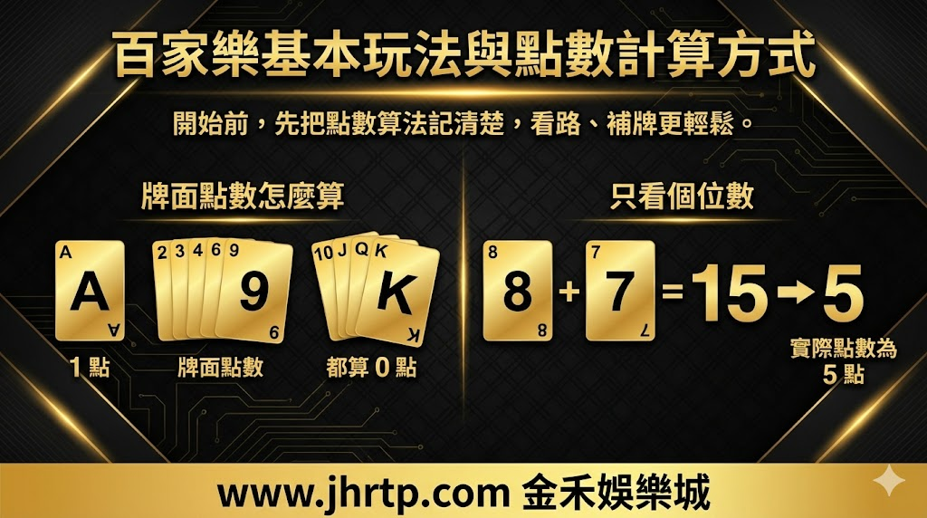 在開始玩之前,最重要的一件事就是先把點數算法記清楚,後面不管看路、看補牌,都會輕鬆很多。