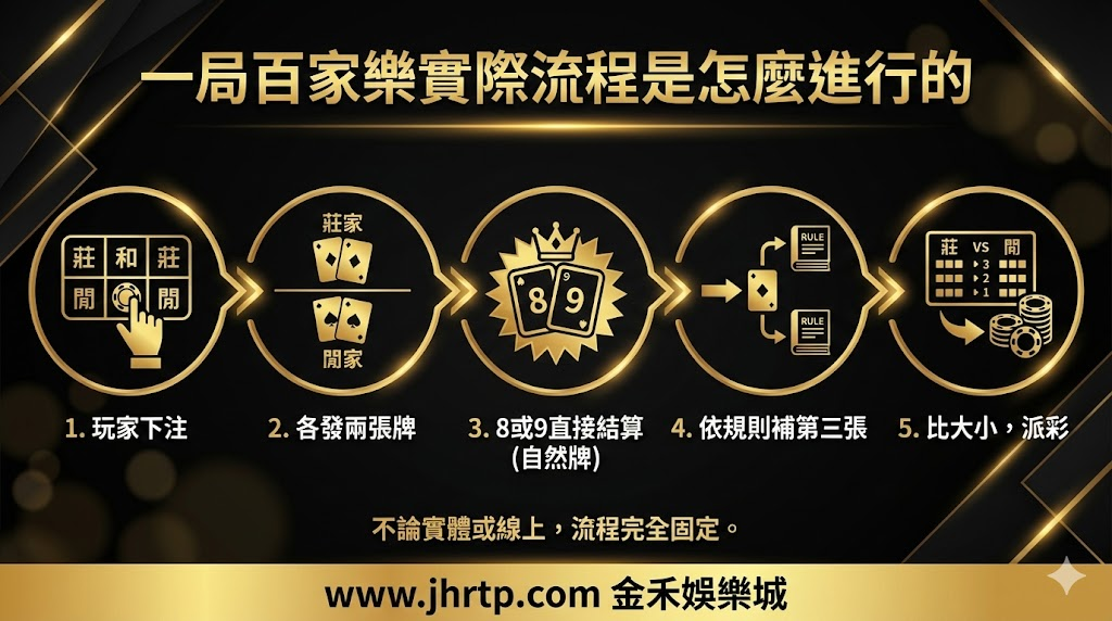 不論你是在實體桌,還是透過金禾娛樂城玩線上百家樂,流程都是一樣的。