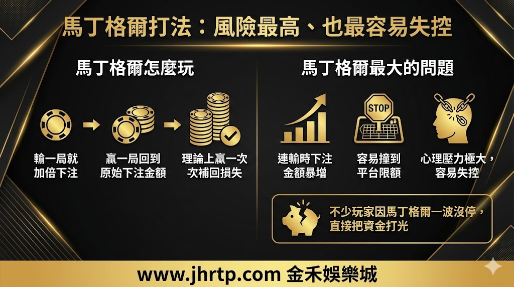 不少玩家在金禾娛樂城或其他線上百家樂平台,都是因為馬丁格爾一波沒停,直接把資金打光。