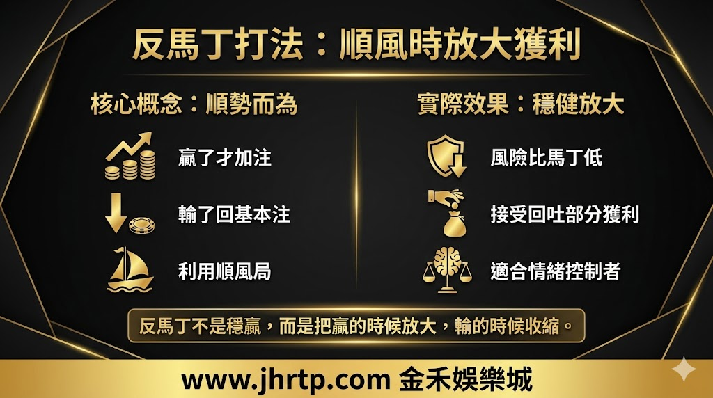 反馬丁剛好跟馬丁相反,是不少老手偏好的變化打法。