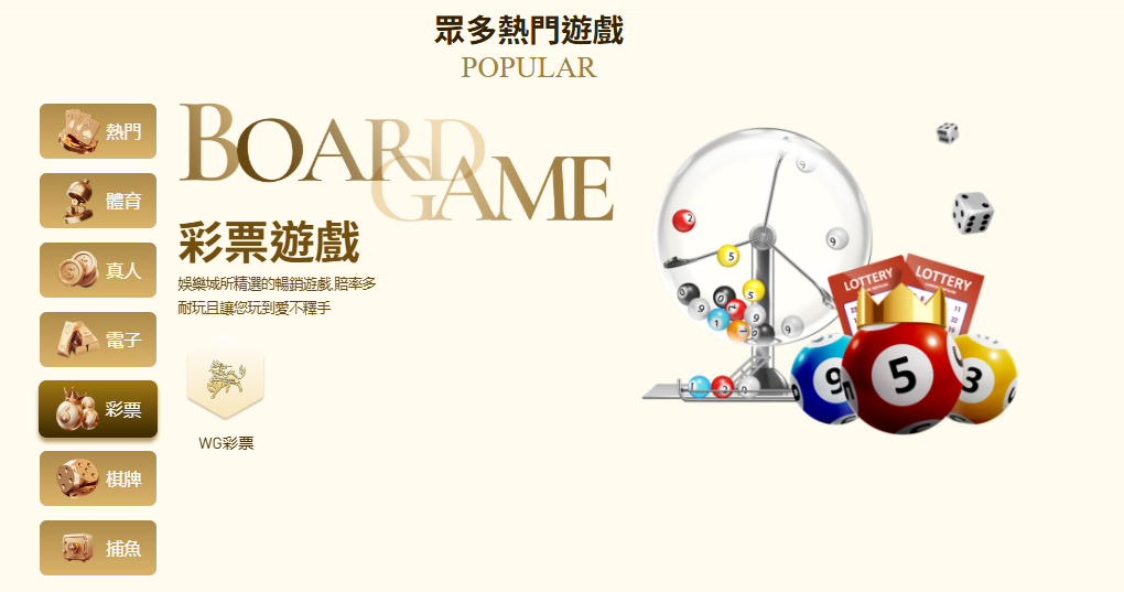 金禾娛樂城涵蓋了廣泛的遊戲類型,讓玩家能根據喜好選擇適合的娛樂方式。無論是刺激的投注還是休閒的遊戲,這裡的娛樂城優惠和最高返水0.4%都能讓您的體驗更具價值。以下是各遊戲種類的詳細介紹,包括更多具體玩法和變奏,讓您全面了解金禾娛樂推薦的豐富內容: