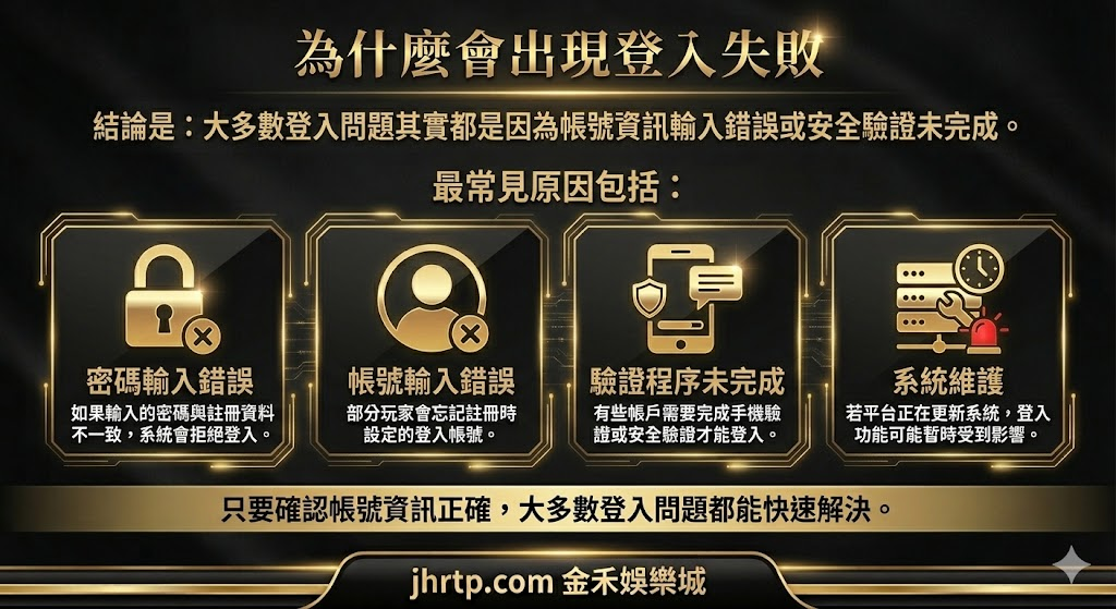 問題:金禾娛樂登入流程是什麼?如果登入失敗該怎麼處理?